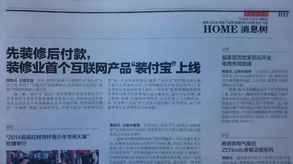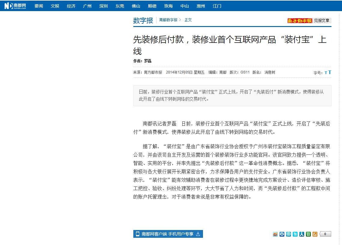 先装修后付款,装修业首个互联网产品“装付宝”上线(南方都市报)